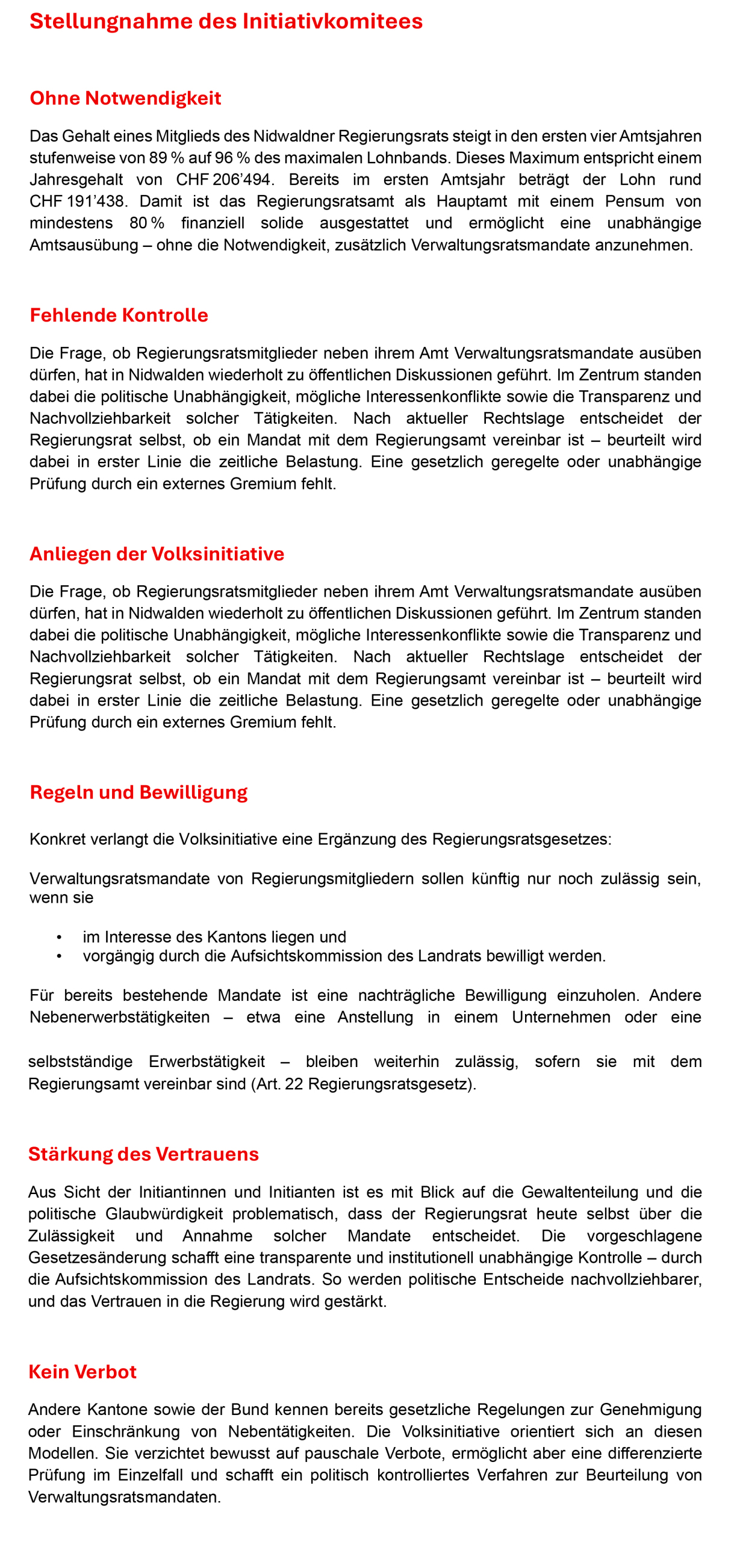 Volksinitiative zur Änderung des Gesetzes über die Organisation des Regierungsrates und der Verwaltung (Regierungsratsgesetz) betreffend «Ja zur Unabhängigkeit - Verwaltungsratsmandate regeln»